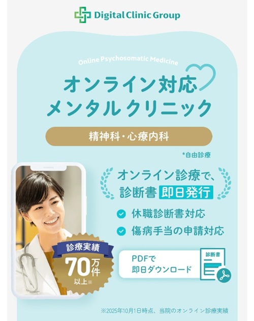 デジタルクリニックは、東京都中央区のデジタルクリニックグループが運営する、心療内科・精神科のオンライン診療サービスです。